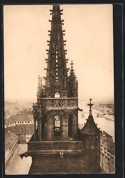 AK Basel, Turmspitze des Münsters, Georgturm