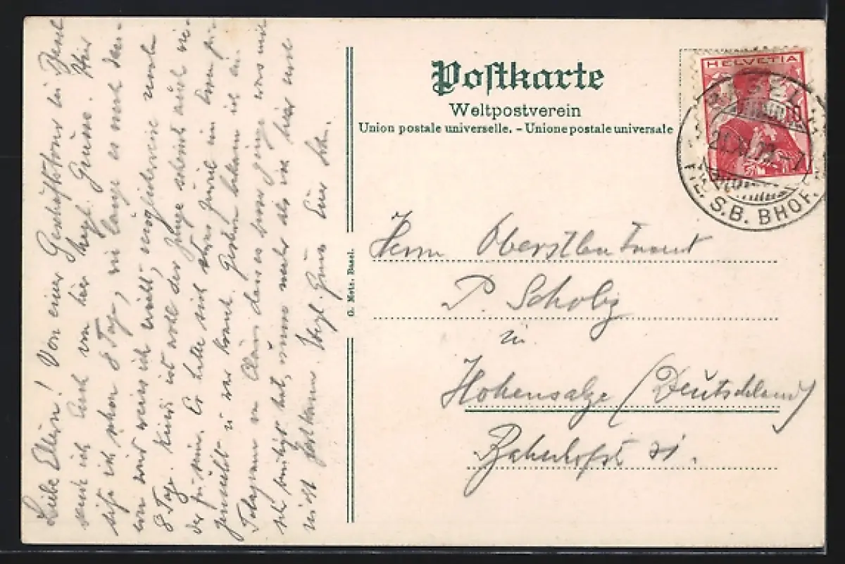 gelaufen 1909, Eckknick re. oben, Abriebspur re. unten, guter Zustand