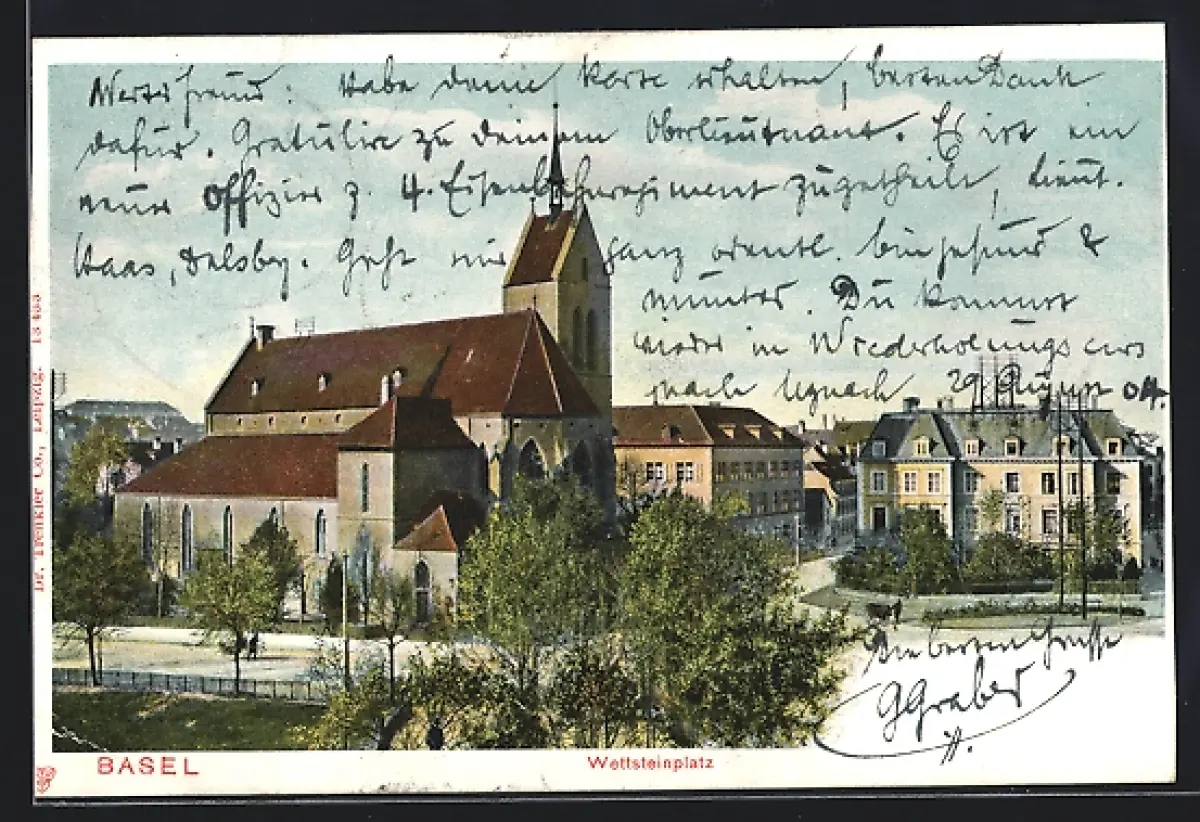AK Basel, Wettsteinplatz mit Kirche, um 1900