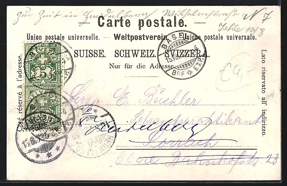 gelaufen 1903, Eckknick oben li., guter Zustand