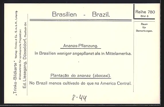 AK Basilien, Ananaspflanzung, Trinks-Bildkarte