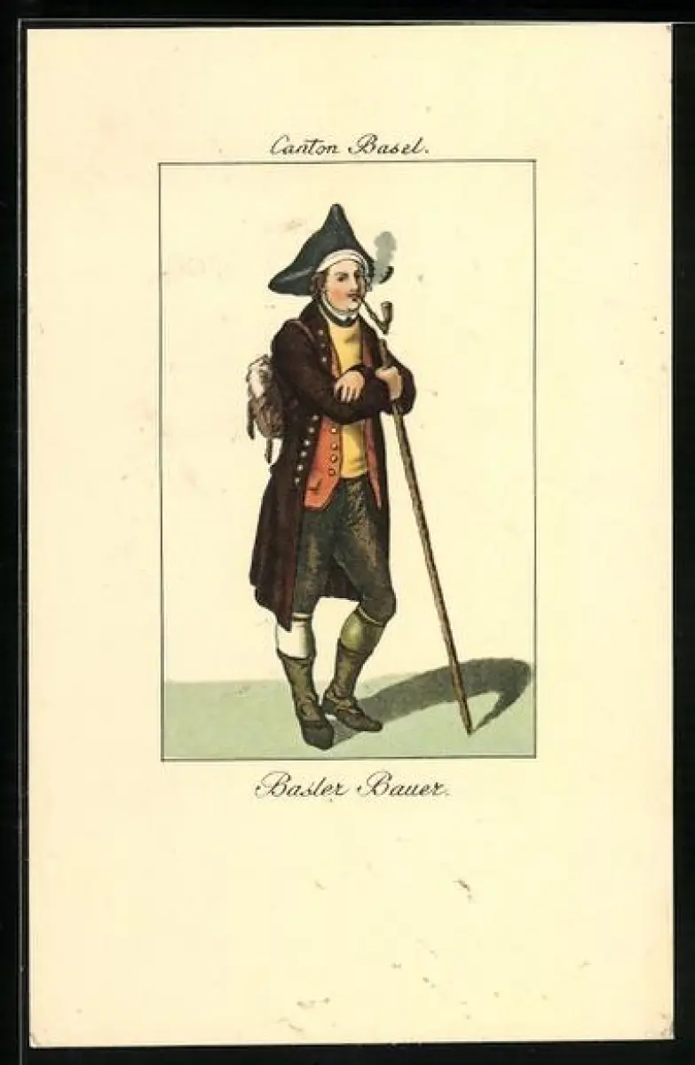 AK Basler Bauer mit Pfeife und Wanderstock