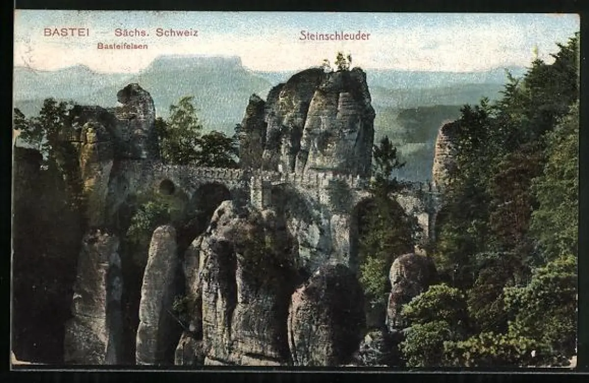 AK Bastei /Sächs. Schweiz, Basteifelsen, Steinschleuder