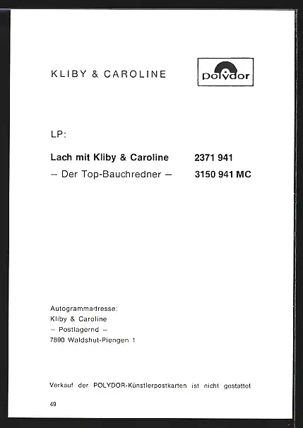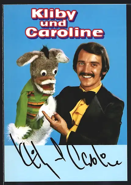 AK Bauchredner Kliby mit seiner Puppe Caroline, original Autograph