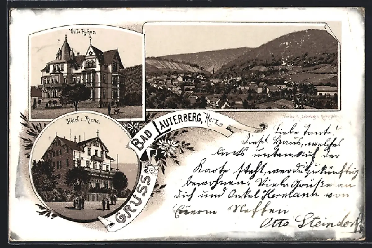 AK Baud Lauterberg /Harz, Hotel z. Krone, Villa Hahne