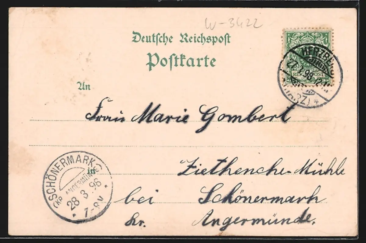 alte Ansichtskarte, gelaufen 1898, Eckknick re. oben, guter Zustand