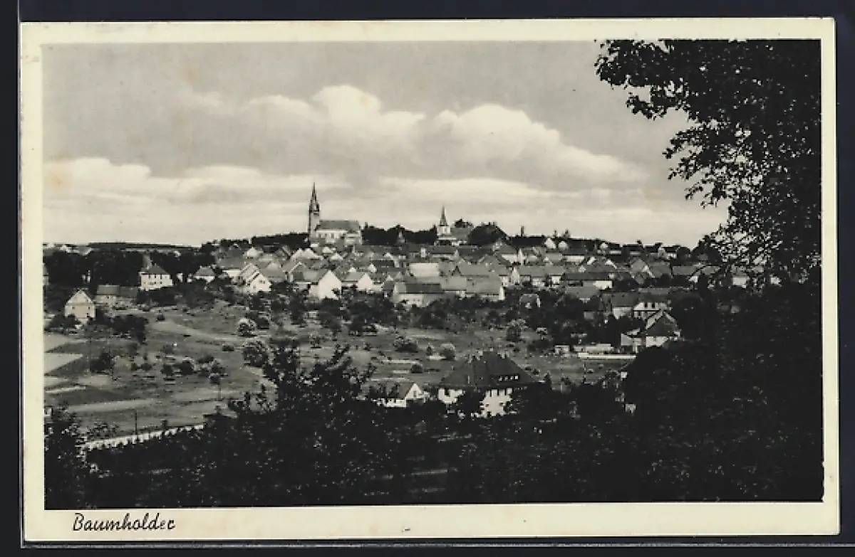 AK Baumholder, Ortsansicht mit Kirche und Stadtpanorama
