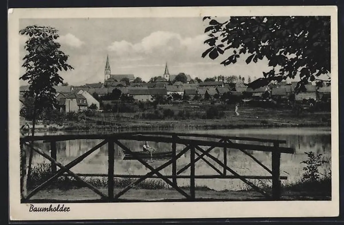 AK Baumholder, Ortsansicht mit See und Kirche
