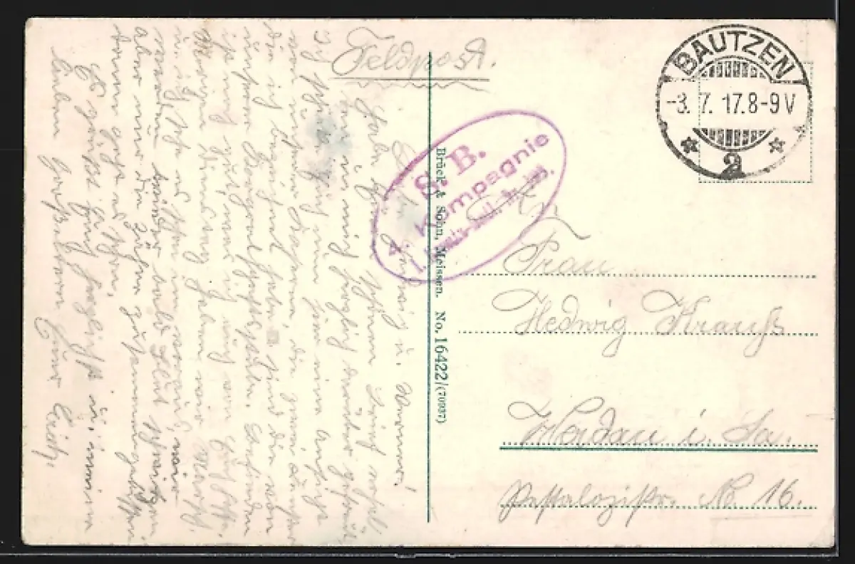 alte Ansichtskarte, gelaufen 1917, Eckknick li. unten, guter Zustand