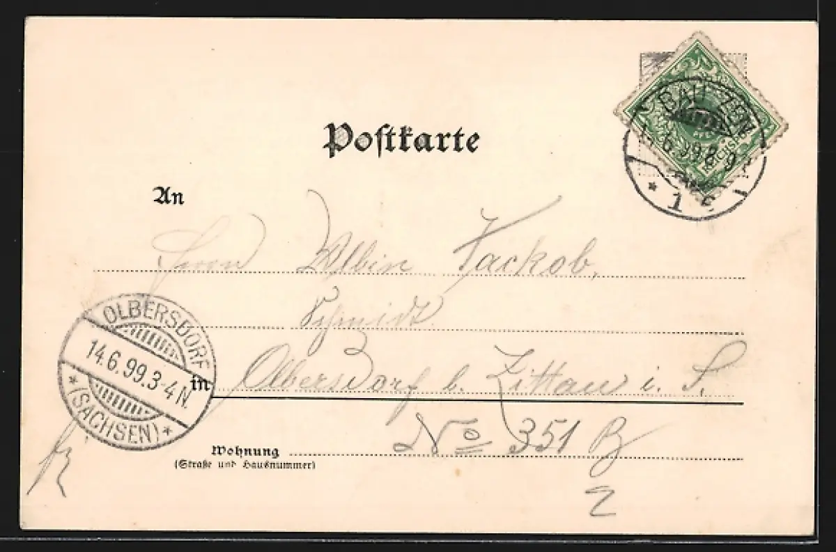 alte Ansichtskarte, gelaufen 1899, guter Zustand