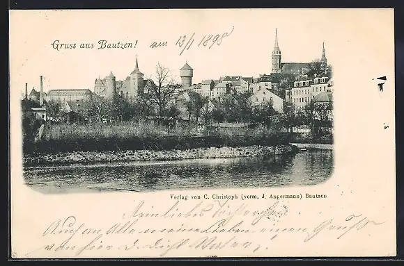 AK Bautzen, Stadtpanorama mit Wasserturm