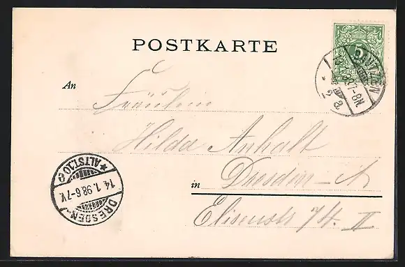 alte Ansichtskarte, gelaufen 1898, guter Zustand