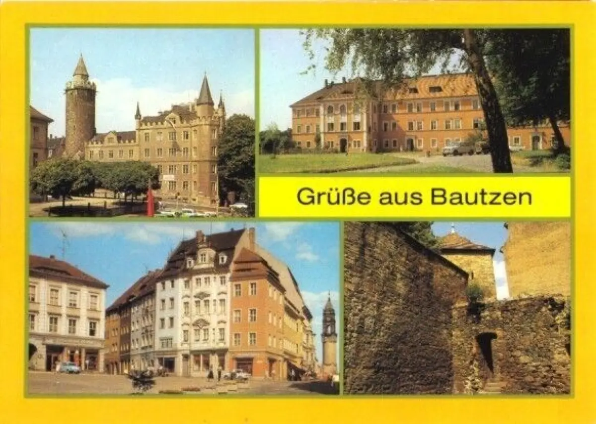 Ansichtskarte Bautzen vier Abb. - Wendischer Turm, Museum für sorbische Geschichte, Hauptmarkt, Reste der Stadtmauer Erhaltung I-II ungelaufen Druckvermerk: 1987 Herstellungsland: DDR Verlag: VEB Bild und Heimat, Reichenbach i. V. - 01 12 0968/01
