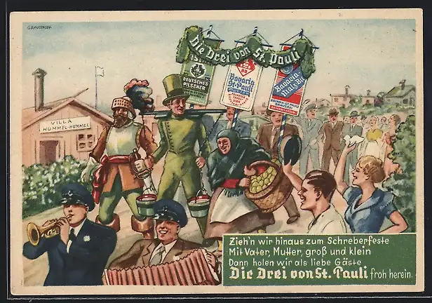 AK Bavaria- und St. Pauli-Brauerei in Hamburg, Die Drei von St. Pauli, Villa Hummel-Hummel, Schreberfest