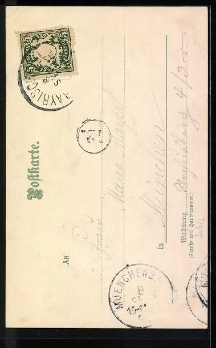alte Ansichtskarte, gelaufen 1900, Eckknick re. oben, Stempelspur, guter Zustand