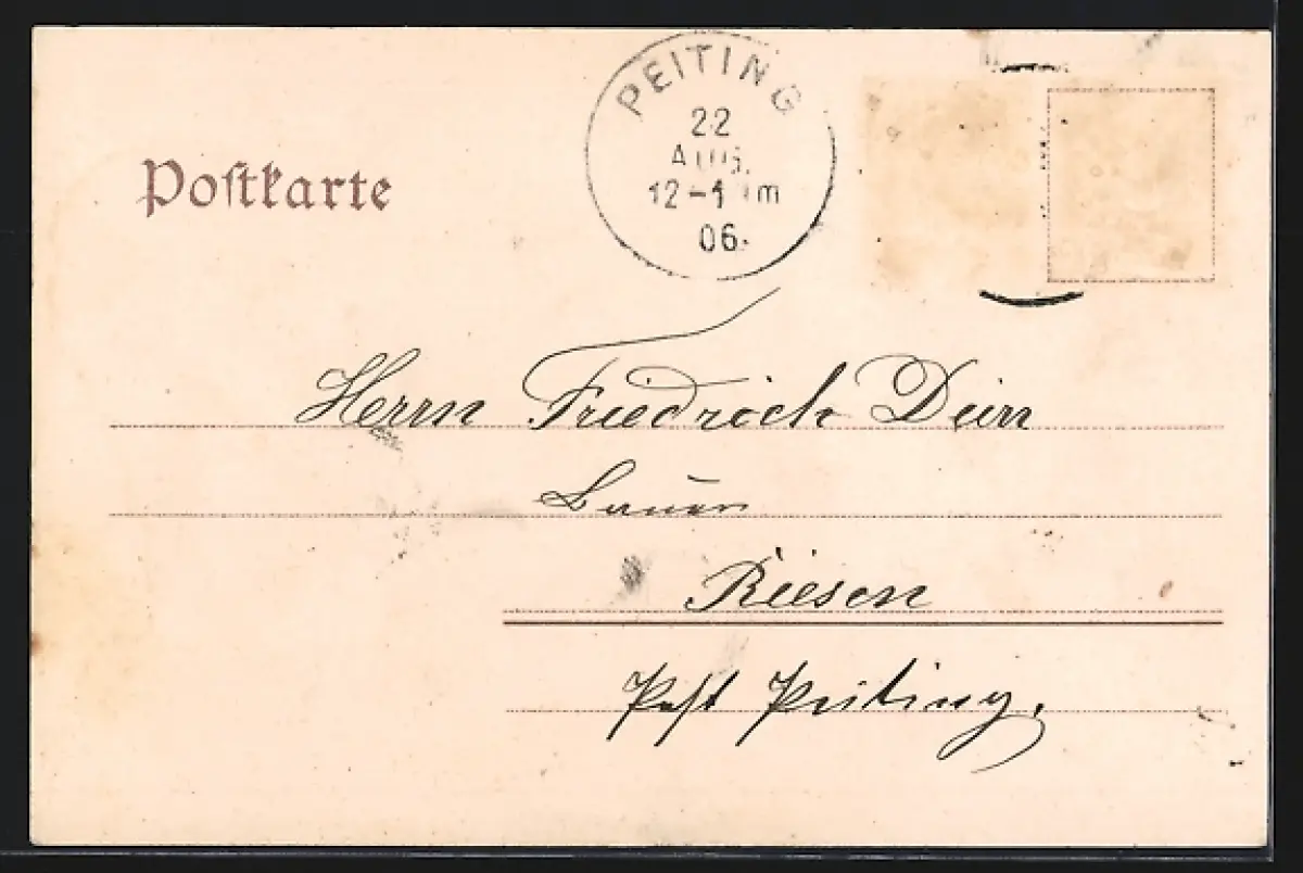 alte Ansichtskarte, gelaufen 1906, Briefmarke entfernt, guter Zustand