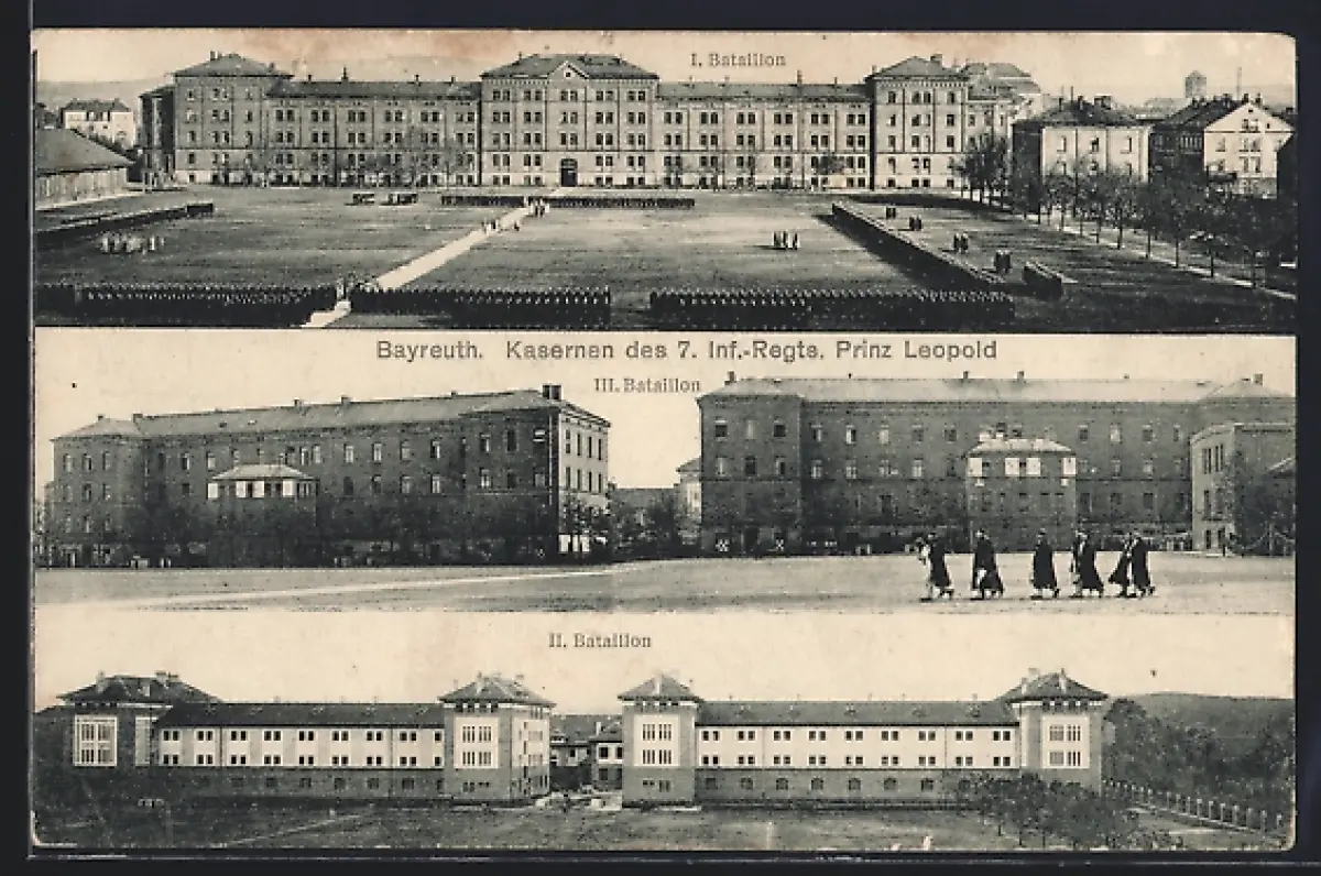 AK Bayreuth, Kasernen des 7. Inf.-Regts. Prinz Leopold, I. Bataillon, II. Bataillon, III. Bataillon