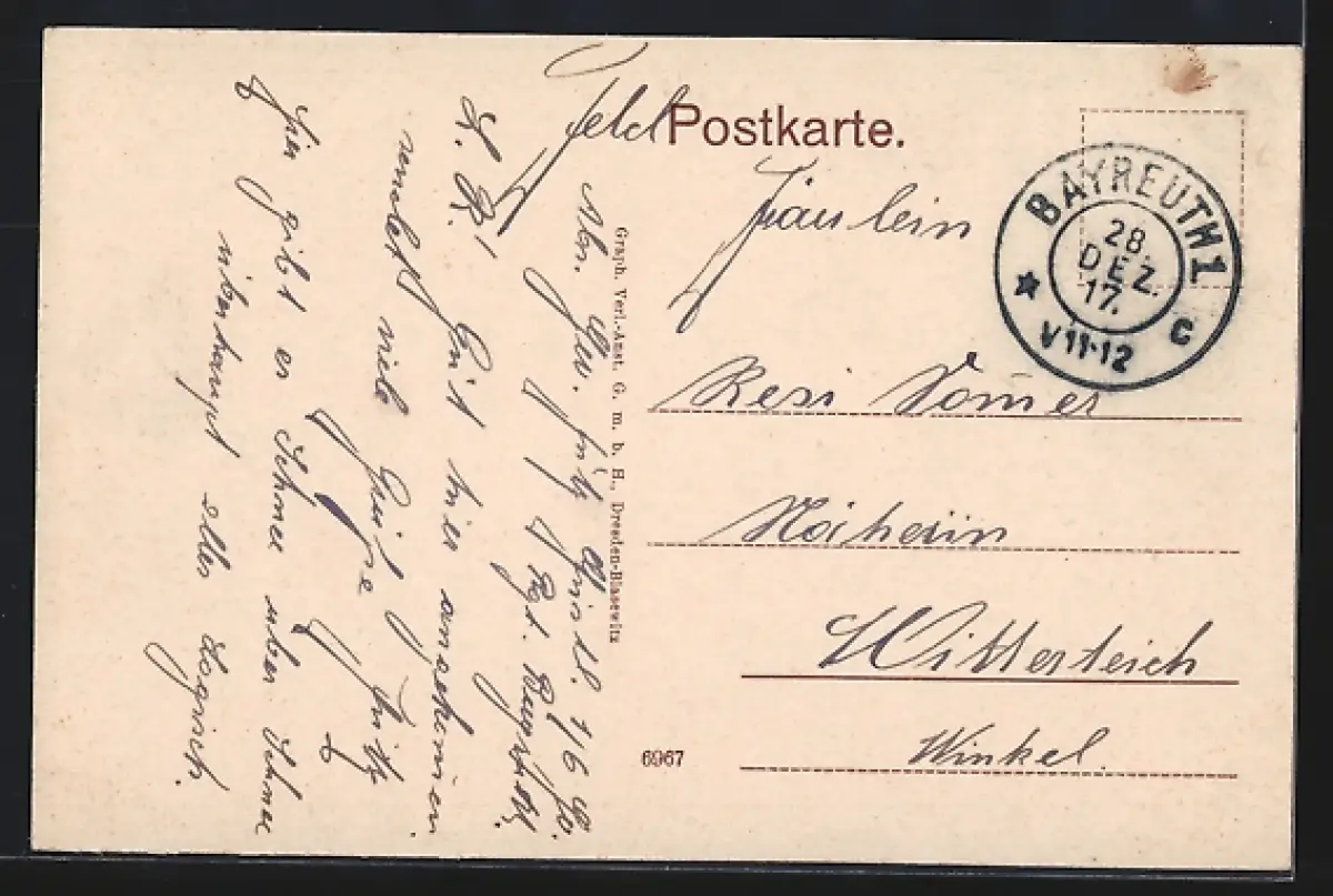 alte Ansichtskarte, gelaufen 1917, Stempelspur, guter Zustand