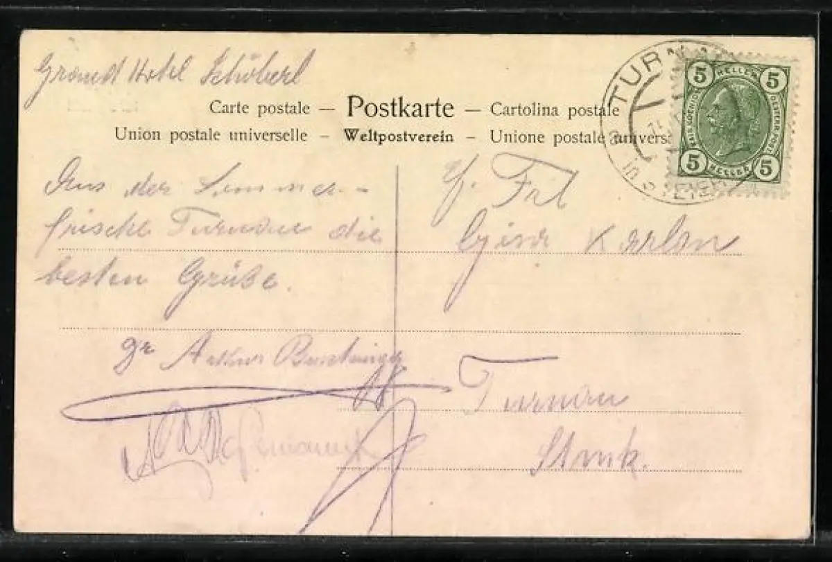 alte Ansichtskarte, gelaufen, Einriss unten re., guter Zustand