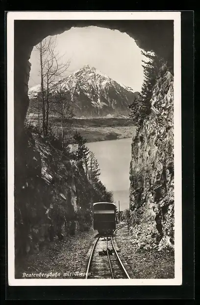 AK Beatenbergbahn fährt durch Tunnel