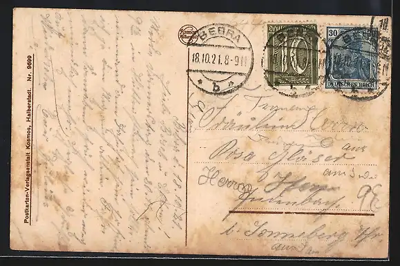alte Ansichtskarte, gelaufen 1921, Eckknicke unten, guter Zustand