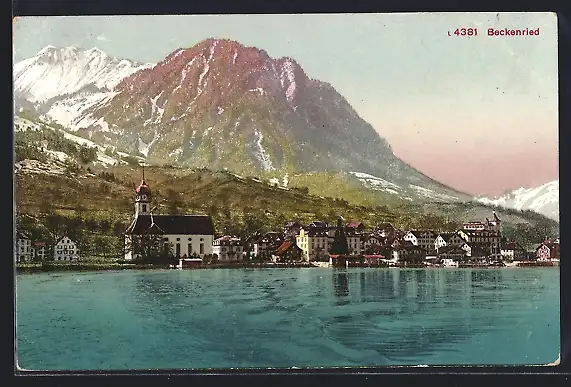 AK Beckenried, Uferpartie mit Kirche