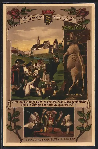 AK Beckum / Westf., Oh sancta simplicitas!, Beckumer Bürger versuchen einem Stier zu Futter zu verhelfen