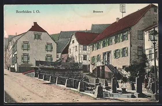 AK Beerfelden i. O., Brunnen, u. Mümmling-Quellen, Strassenpartie, Kinder