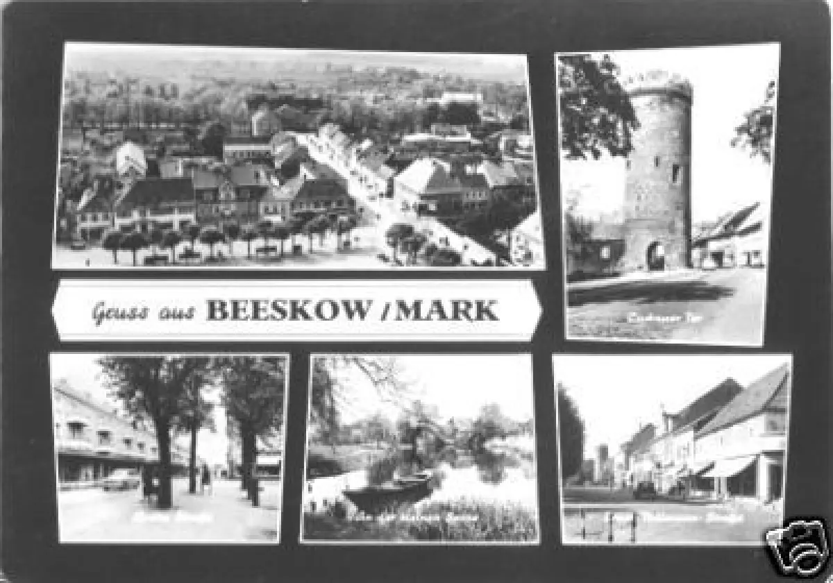 Ansichtskarte Beeskow Mark fünf Abb., gestaltet   Erhaltung I-II ungelaufen Druckvermerk: 1966 Herstellungsland: DDR Verlag: Graphokopie H. Sander, Berlin - B2376