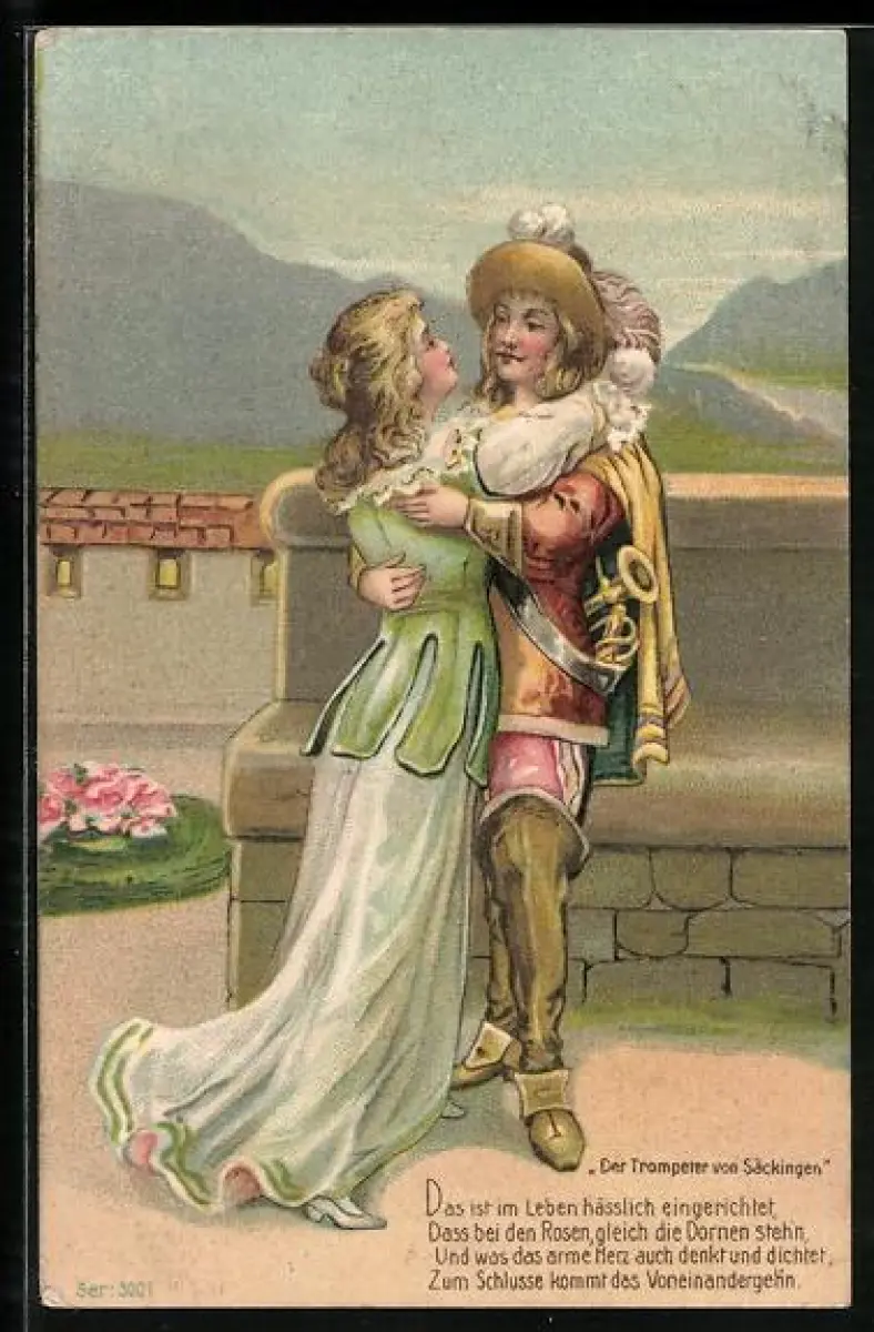 AK Behüt Dich Gott!, Der Trompeter von Säckingen umarmt seine Geliebte, Gedicht