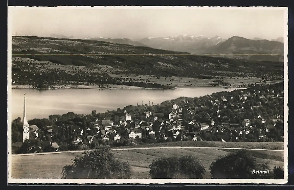 AK Beinwil, Ortsansicht mit Kirche und See