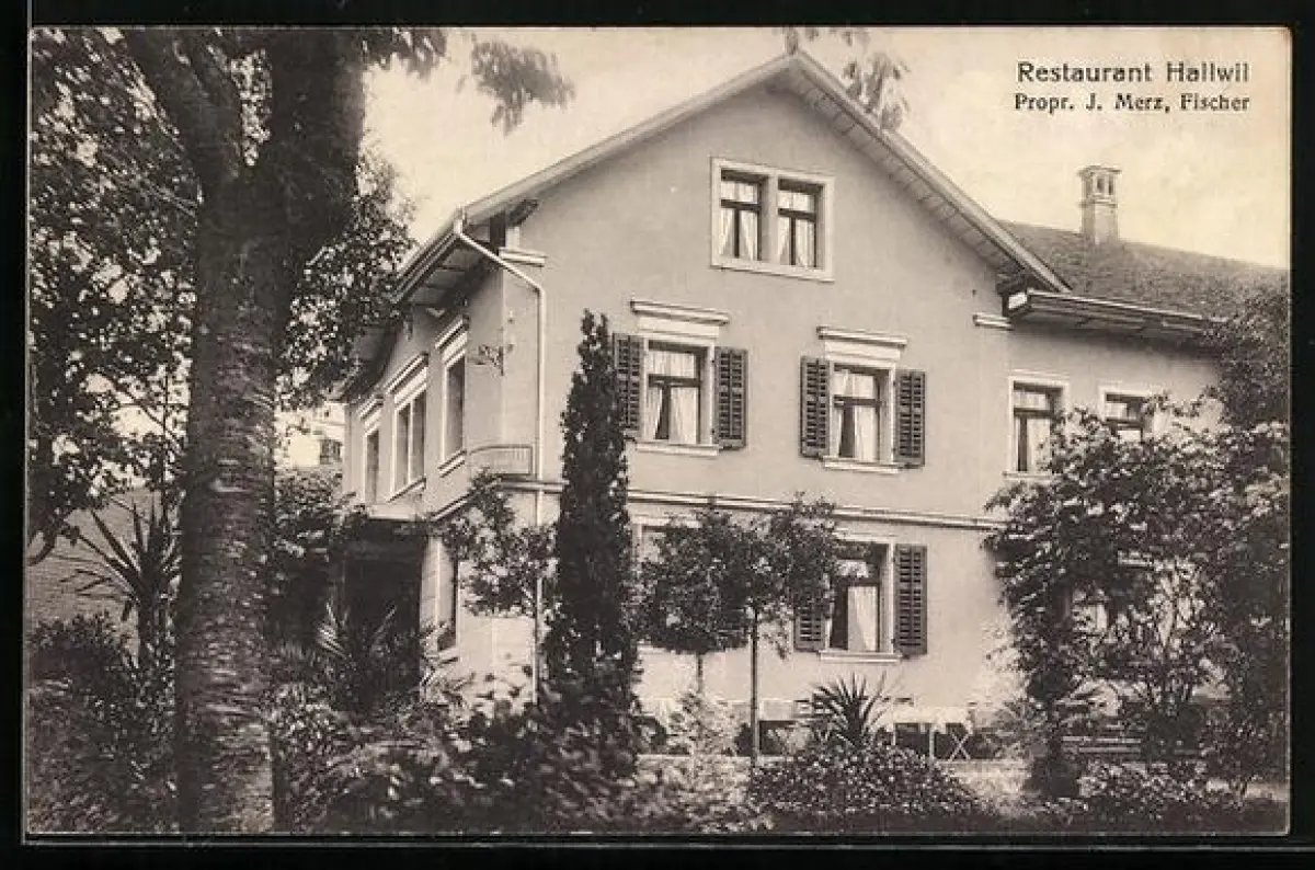 AK Beinwil a. See, Restaurant Hallwil J. Merz, Fischer, Gartenansicht