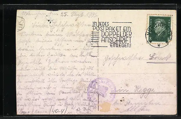gelaufen 1931, rückseitig Oberflächenschaden, guter Zustand