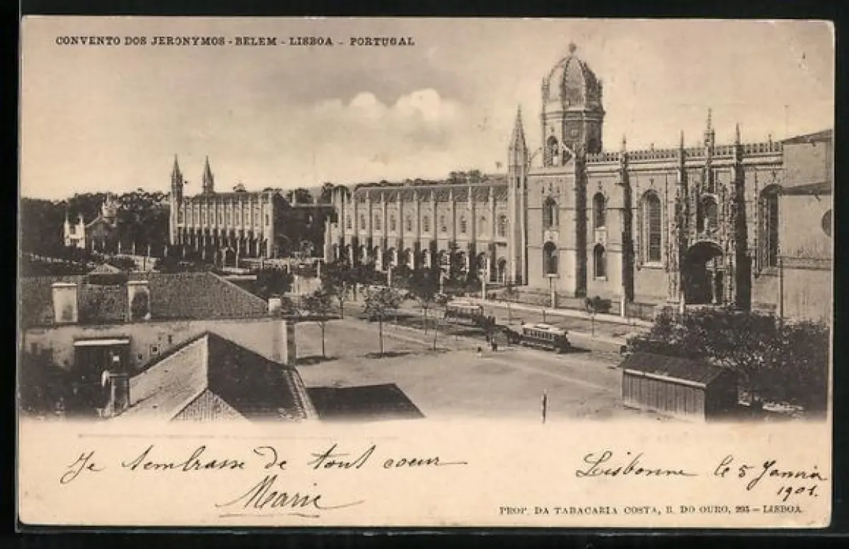 AK Belem /Lisboa, Convento dos Jeronymos, Strassenbahn