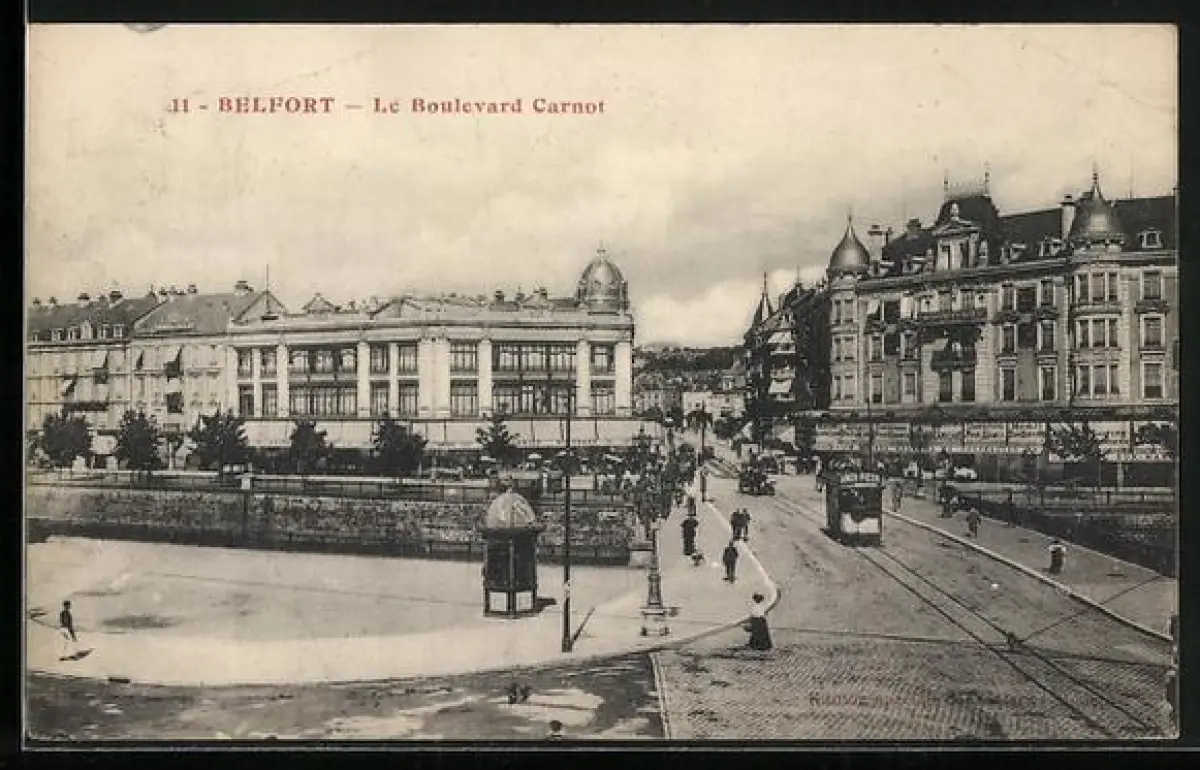 AK Belfort, Le Boulevard Carnot, Strassenbahn