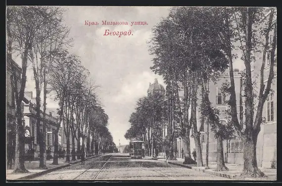AK Belgrad, Strassenpartie mit Strassenbahn