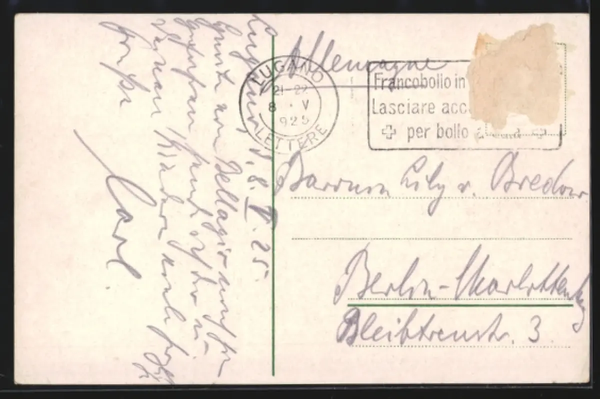 gelaufen 1925, Briefmarke entfernt, rückseitig Oberflächenschaden