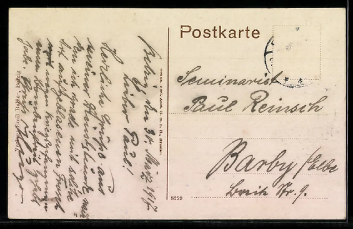 alte Ansichtskarte, gelaufen 1917, Briefmarke entfernt, guter Zustand