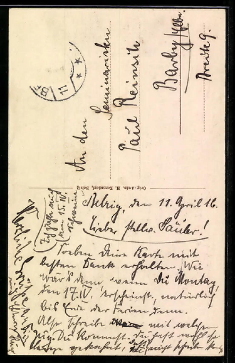 alte Ansichtskarte, gelaufen, Briefmarke entfernt, guter Zustand