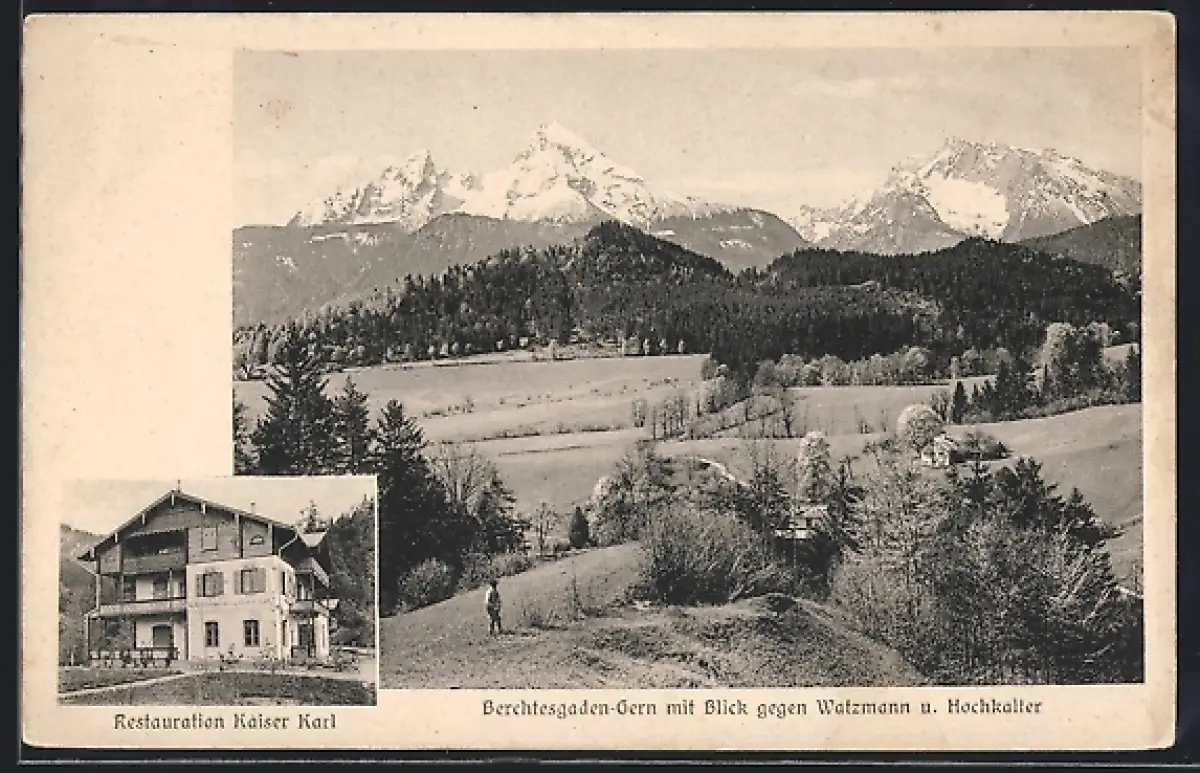 AK Berchtesgaden-Gern, Gasthaus Kaiser Karl, Totalansicht