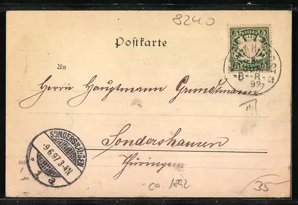 alte Ansichtskarte, gelaufen 1897, guter Zustand