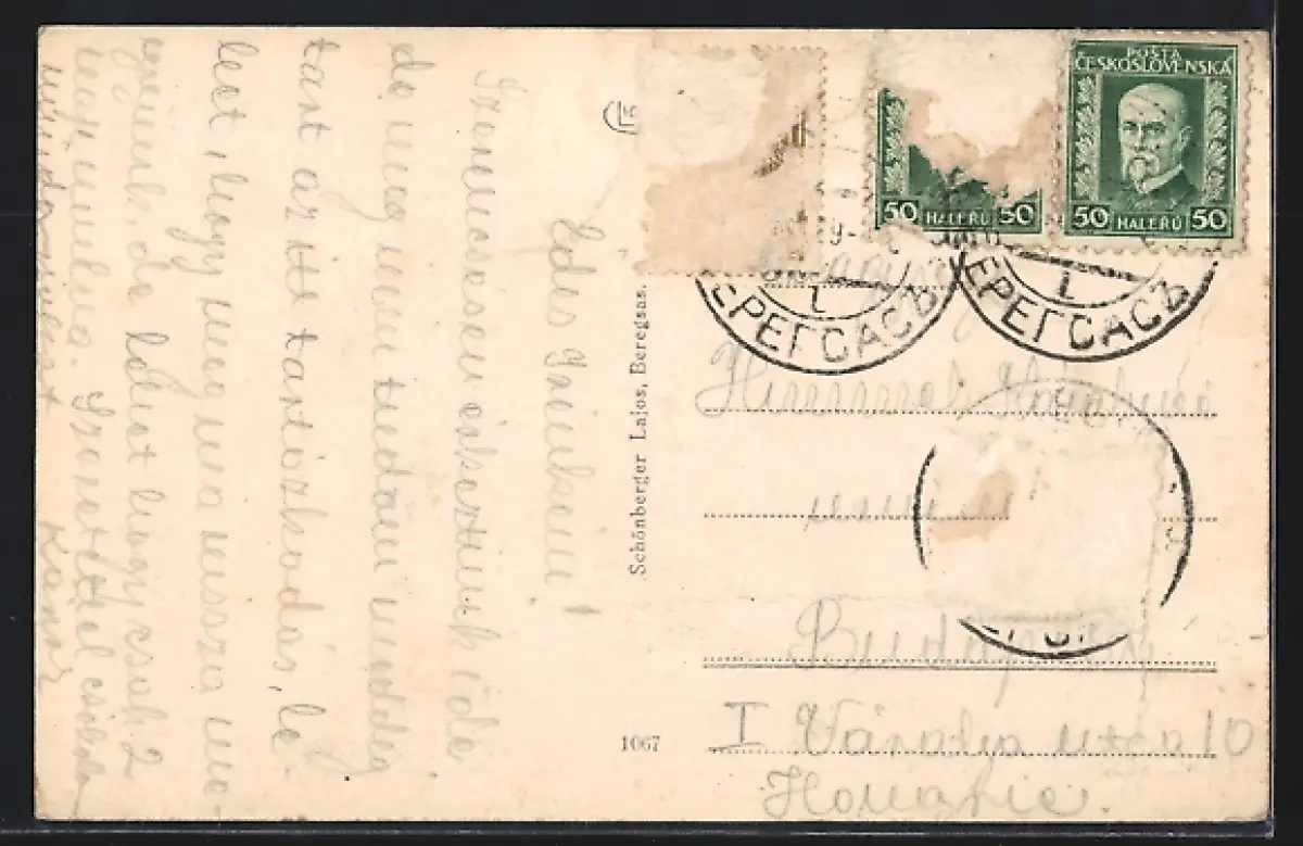 alte Ansichtskarte, gelaufen, Briefmarke entfernt, rückseitig Oberflächenschaden, Bugspur li., guter Zustand
