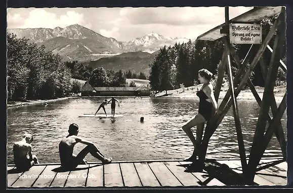 AK Bergen /Obb., Freibad mit Alpenpanorama