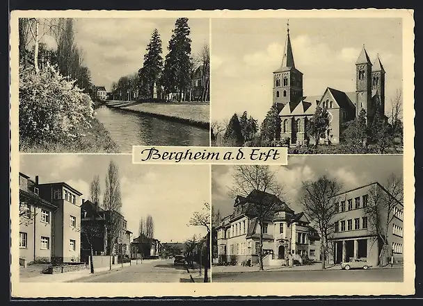AK Bergheim a. d. Erft, Kirche, Strassenpartie, Uferpartie