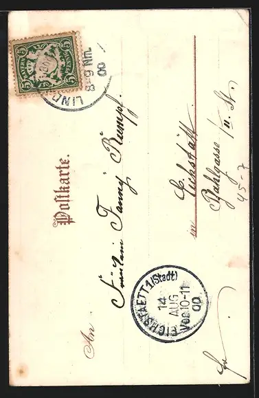 alte Ansichtskarte, gelaufen 1900, guter Zustand