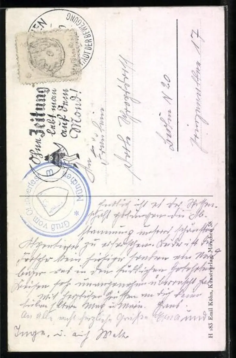 alte Ansichtskarte, gelaufen, Briefmarke entfernt, guter Zustand
