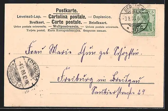 alte Ansichtskarte, gelaufen 1903, guter Zustand