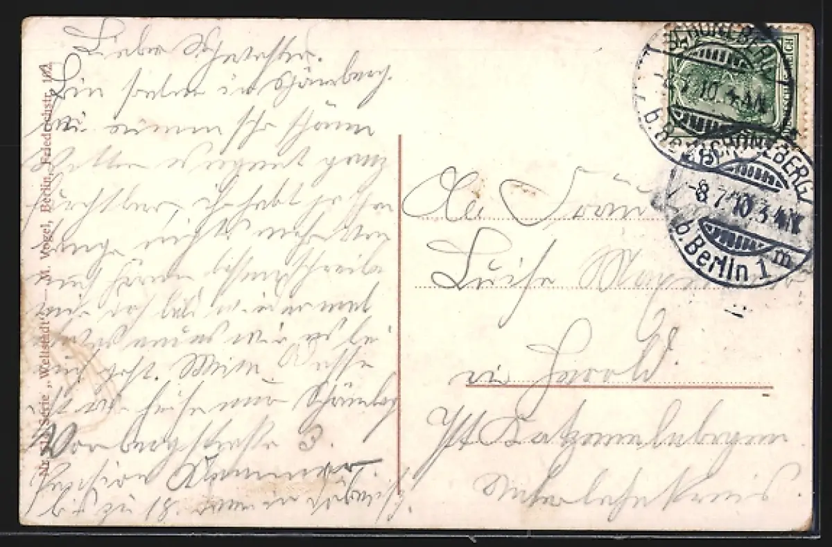 alte Ansichtskarte, gelaufen 1910, Stempelspur, guter Zustand