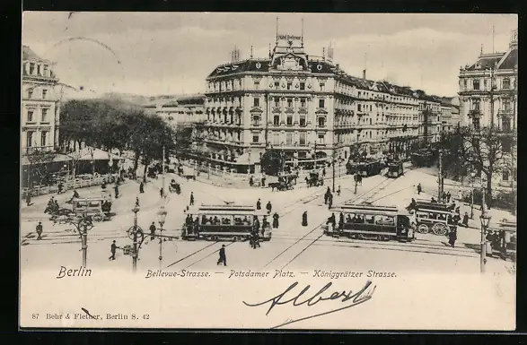 AK Berlin, Bellevue-Strasse, Potsdamer Platz mit Strassenbahn