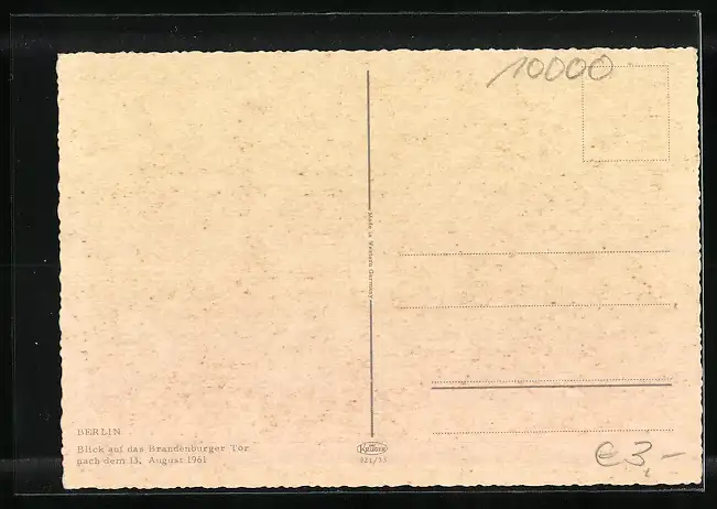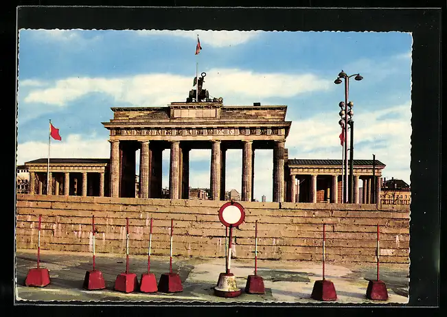 AK Berlin, Blick auf das Brandenburger Tor mit Mauer nach dem 13. August 1961
